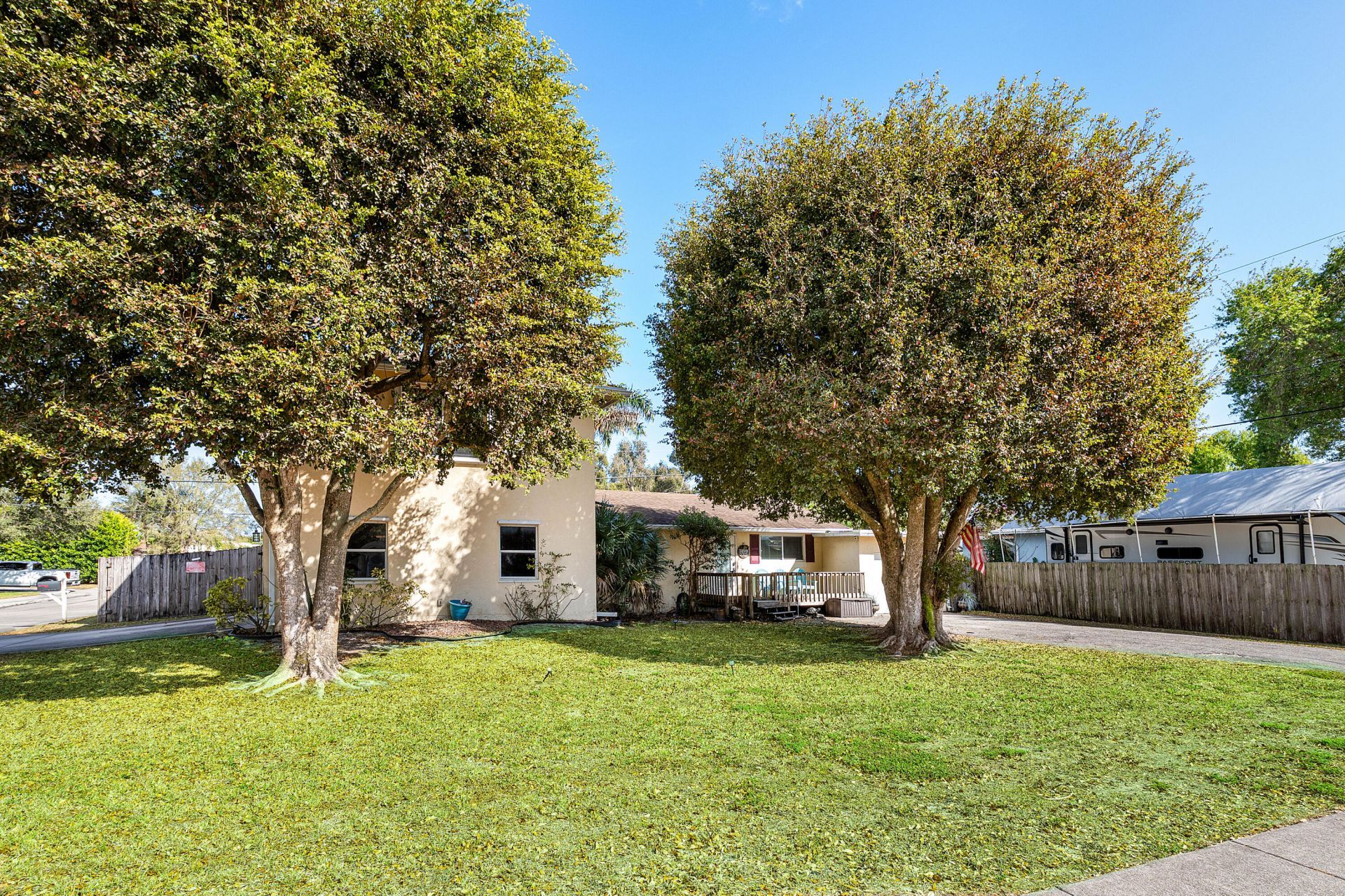 Spacious and versatile 3-bedroom, 3-bath home situated on a large corner lot in a quiet Lake Worth neighborhood. Offering over 2,100 living square feet, this property features a flexible two-story layout with a large primary suite upstairs and generous living areas designed for comfort and entertaining. The kitchen has been updated with granite countertops, modern cabinetry, and French doors leading to a covered deck overlooking the fenced backyard. With two driveways, multiple garage spaces, and plenty of room for RV or boat parking, this property provides exceptional functionality with no HOA restrictions. Conveniently located near major roads, shopping, dining, and top Palm Beach County amenities.